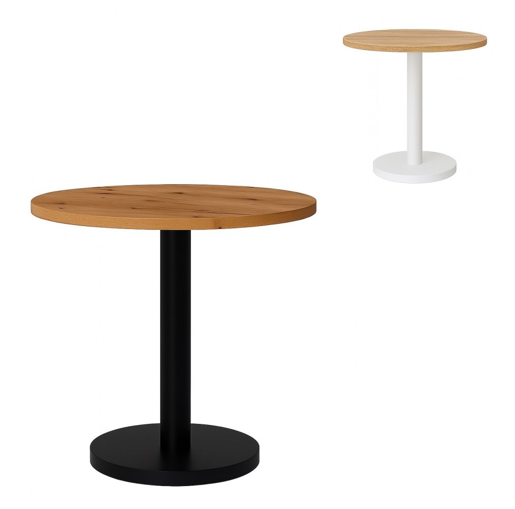 Istnieje możliwość dobrania dowolnego zestawienia kolorów blatu z przedstawionego wzornika kolorów płyt laminowanych. Do wyboru noga oraz podstawa stolika w kolorze białym lub czarnym.
