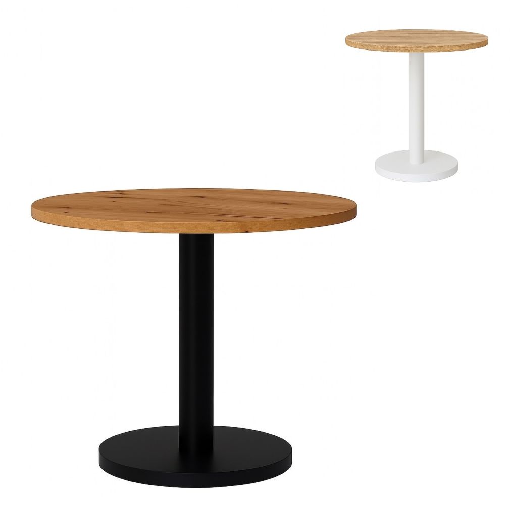 Istnieje możliwość dobrania dowolnego zestawienia kolorów blatu z przedstawionego wzornika kolorów płyt laminowanych. Do wyboru noga oraz podstawa stolika w kolorze białym lub czarnym.