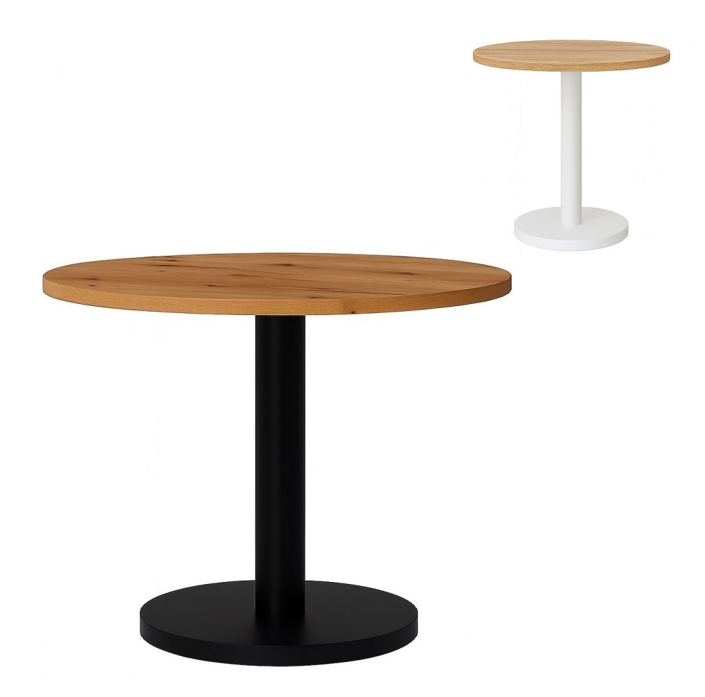 Istnieje możliwość dobrania dowolnego zestawienia kolorów blatu z przedstawionego wzornika kolorów płyt laminowanych. Do wyboru noga oraz podstawa stolika w kolorze białym lub czarnym.