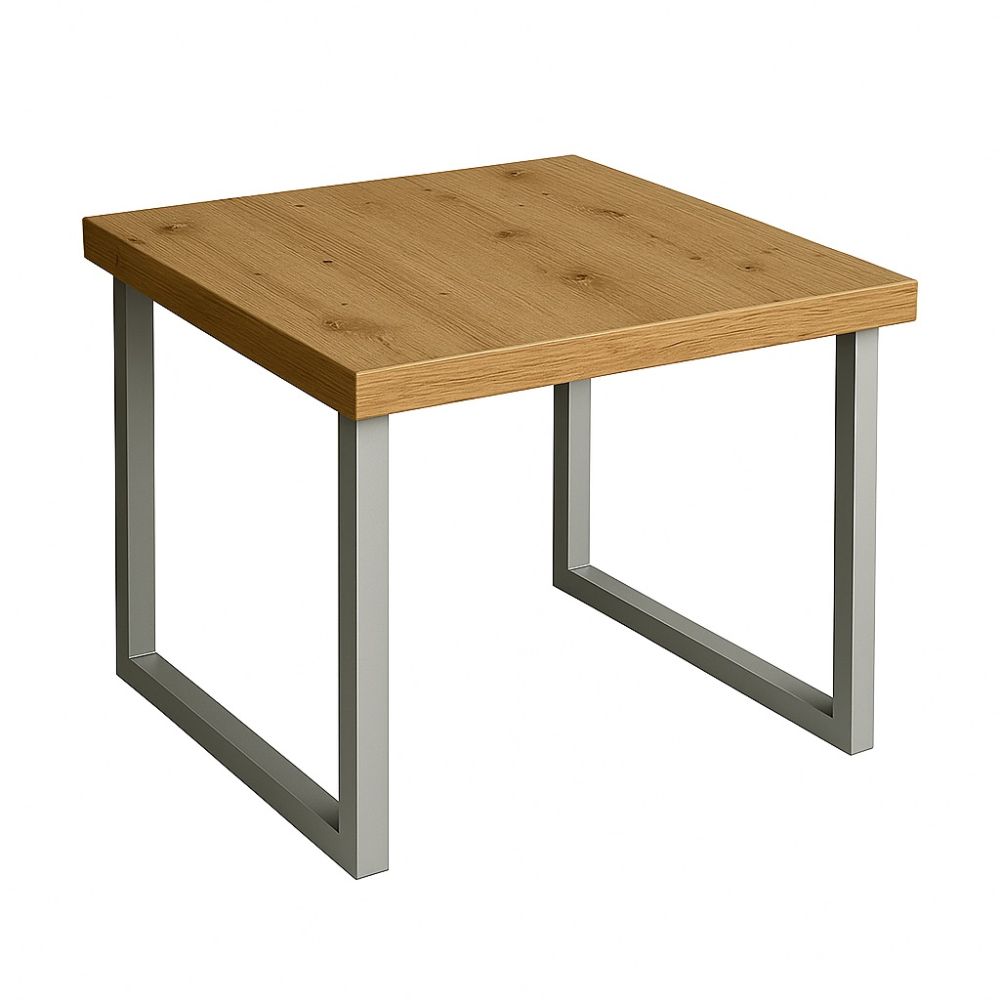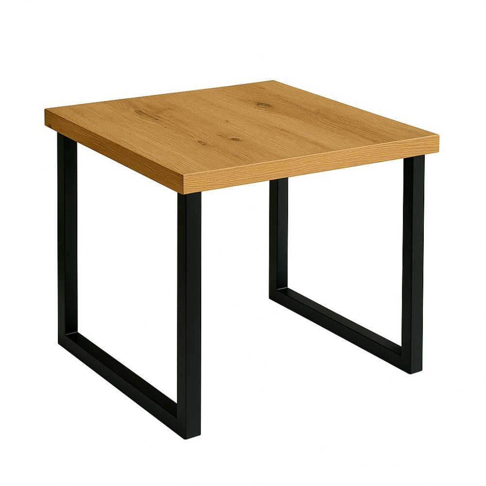 Stół w stylu LOFT Industrial o wymiarach 60cm x 60cm idealnie pasuje do salonu, kuchni czy też jadalni. Blat wykonany z płyty laminowanej o grubości 36mm. Metalowe nogi dostępne w czterech kolorach: Aluminium, Biały, Złoty lub Czarny malowane proszkowo zapewnia doskonałą stabilność stołu.