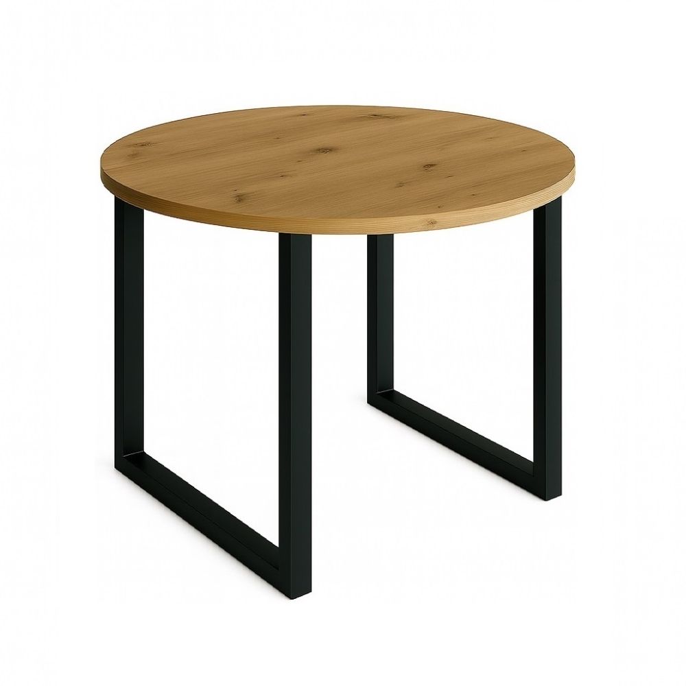 Stół w stylu LOFT Industrial o średnicy Ø 90cm idealnie pasuje do salonu, kuchni czy też jadalni. Blat wykonany z płyty laminowanej o grubości 36mm. W połączeniu z solidnym metalowym stelażem malowanym proszkowo w kolorze czarny mat stół jest trwały i wytrzymały.