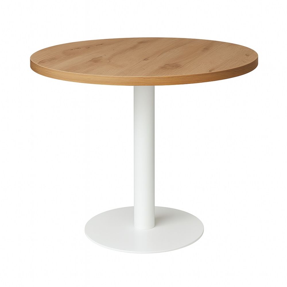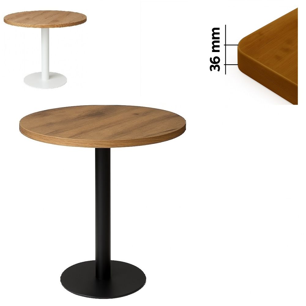 Praktyczny stolik okolicznościowy w stylu LOFT o średnicy fi 60cm oraz wysokości 75cm. Blat wykonany z płyty laminowanej o grubości 36mm. Metalowa noga oraz podstawa w kolorze białym lub czarnym zapewnia doskonałą stabilność stolika. Dzięki swym wymiarom doskonale sprawdza się w niewielkich pomieszczeniach.
