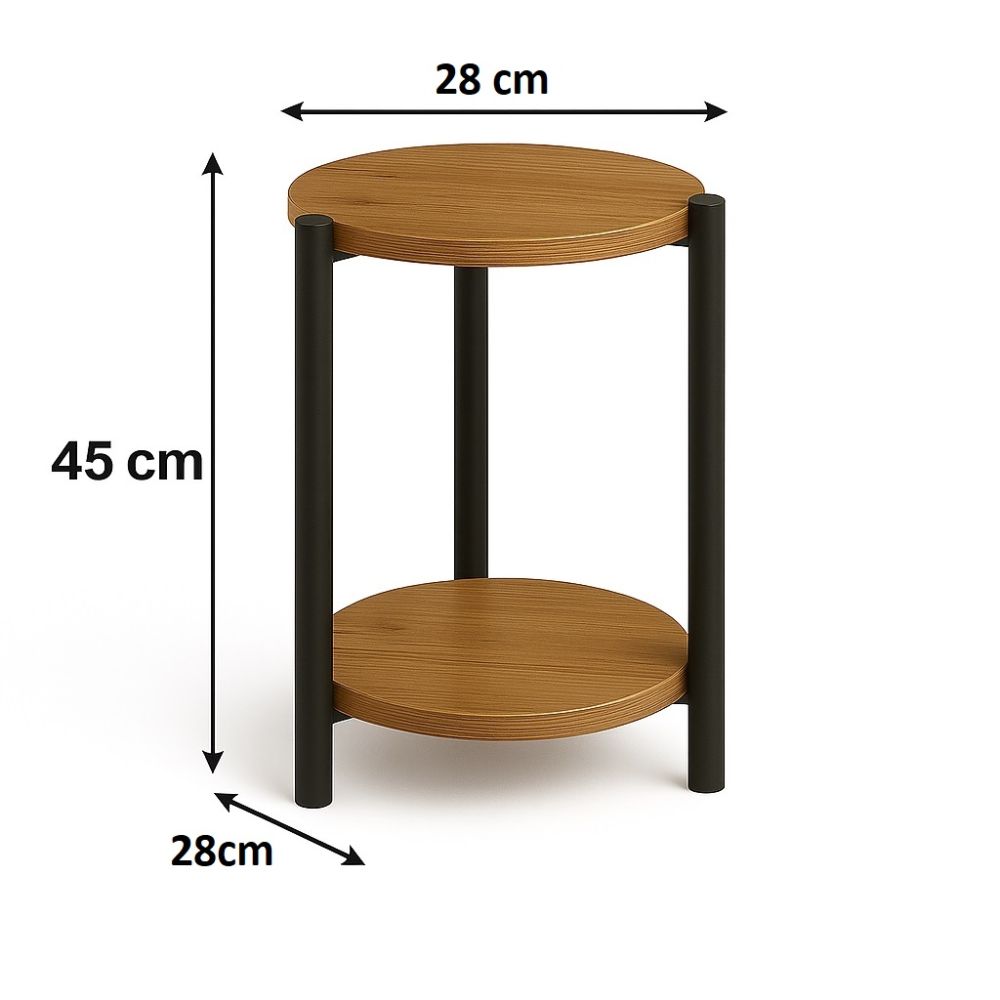 Kwietnik stojący w stylu LOFT INDUSTRIAL o średnicy blatów fi 28cm i wysokości 45cm. Wykonany z płyty laminowanej o grubości 18mm. Metalowe nogi malowana proszkowo zapewnia doskonałą stabilność kwietnika.