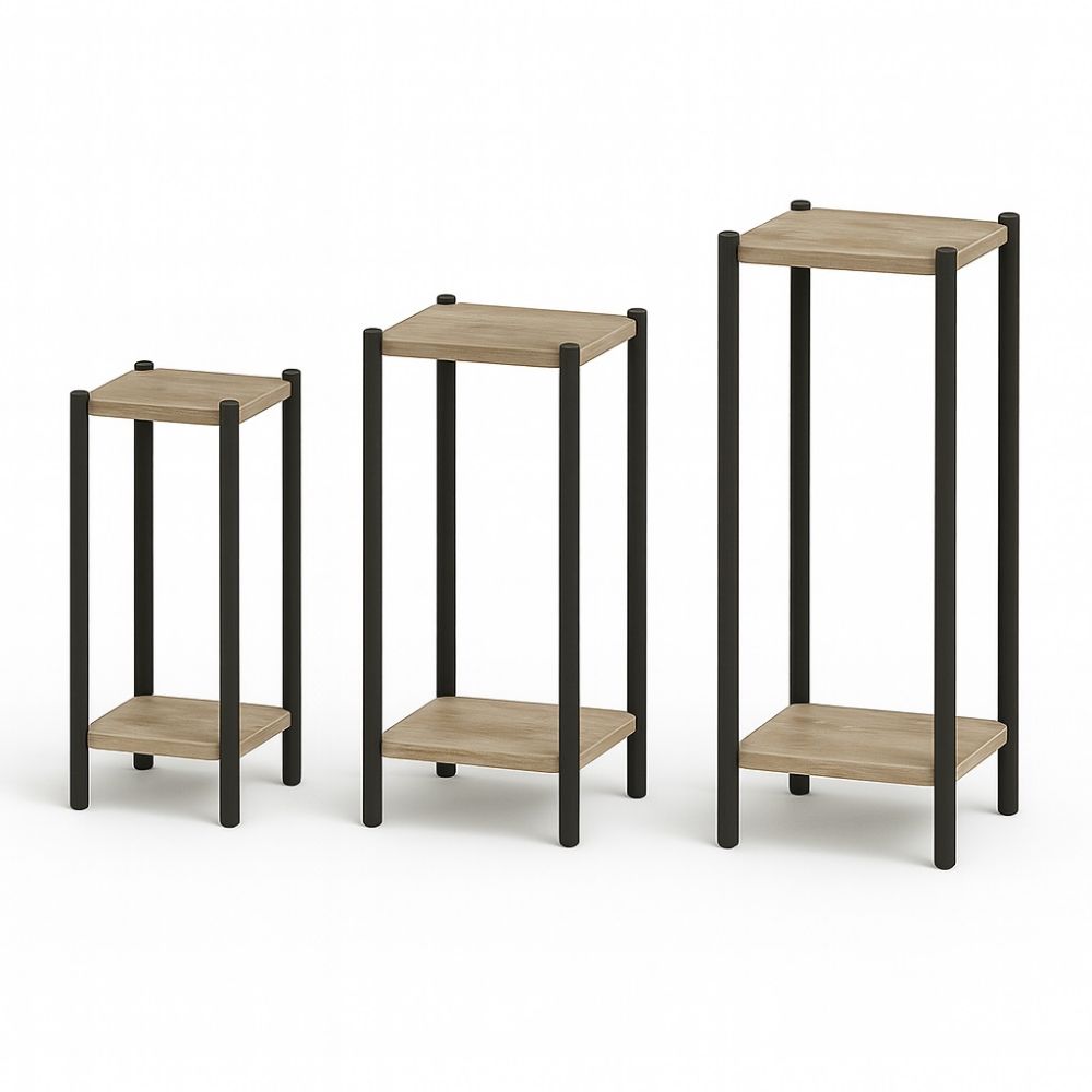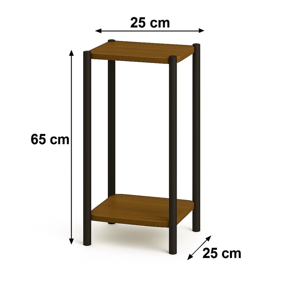 Kwietnik stojący w stylu LOFT INDUSTRIAL o wymiarach blatów 25cm x 25cm i wysokości 65cm. Wykonany z płyty laminowanej o grubości 18mm. Metalowe nogi malowana proszkowo zapewnia doskonałą stabilność kwietnika.