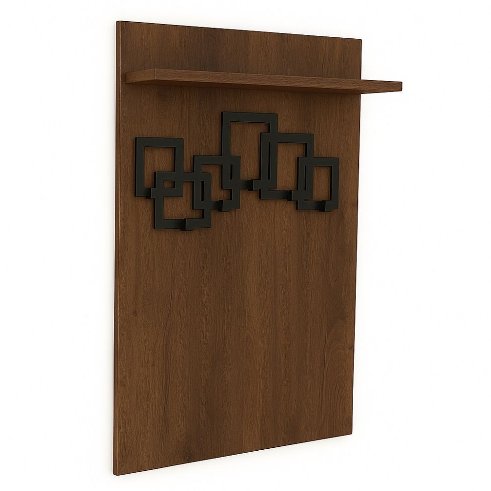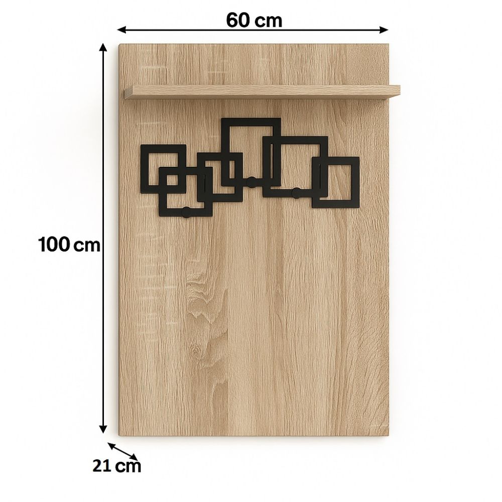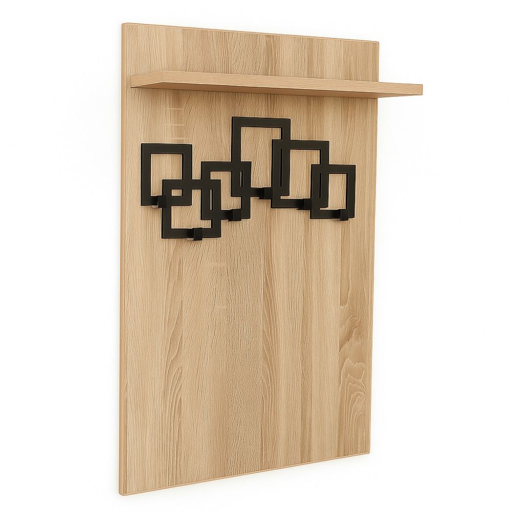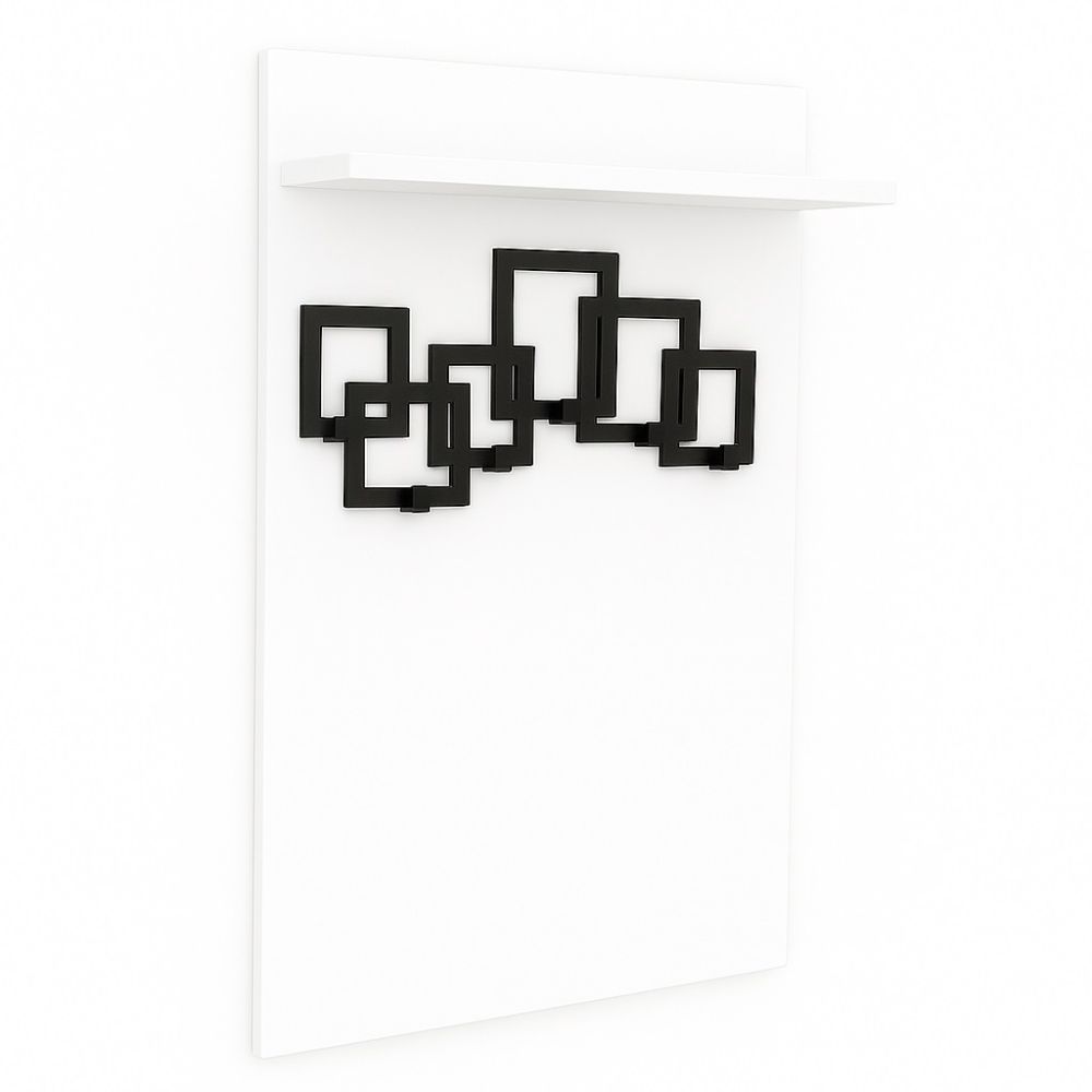 Nowoczesny wieszak, garderoba doskonale nadająca się do przedpokoju. Wykonany jest on z płyty laminowanej o grubości 18mm. Ozdobny panel w kolorze czarnym posiadający 6 funkcjonalnych haczyków na ubrania.