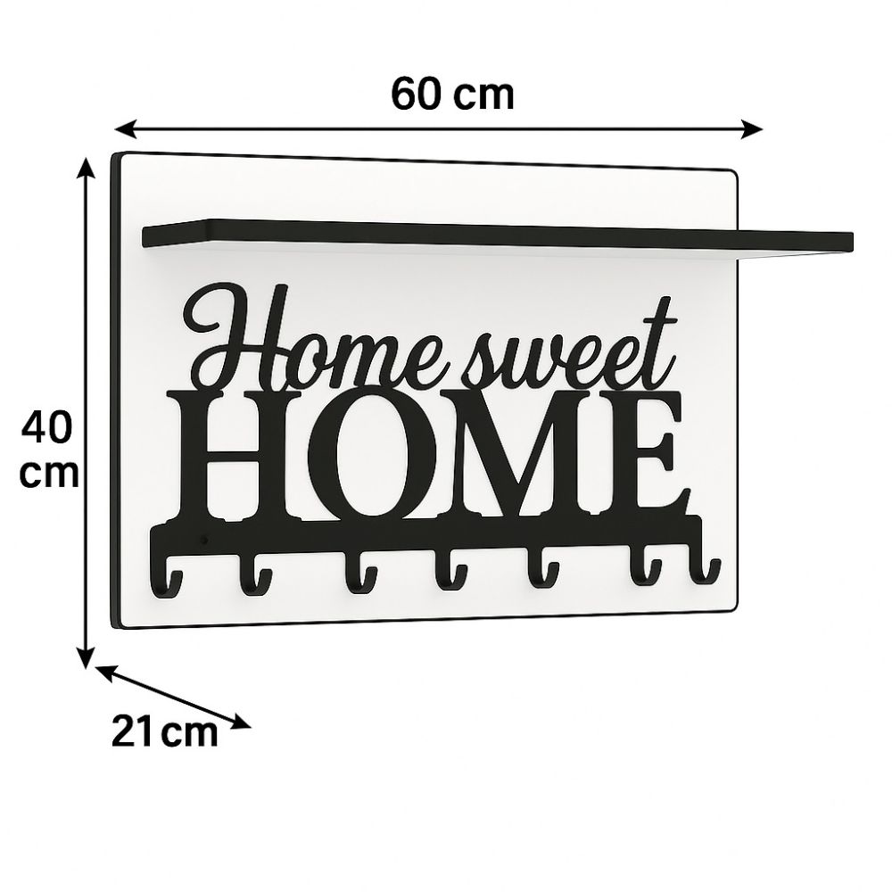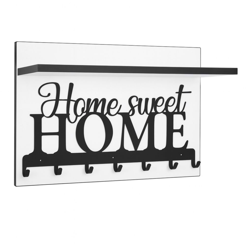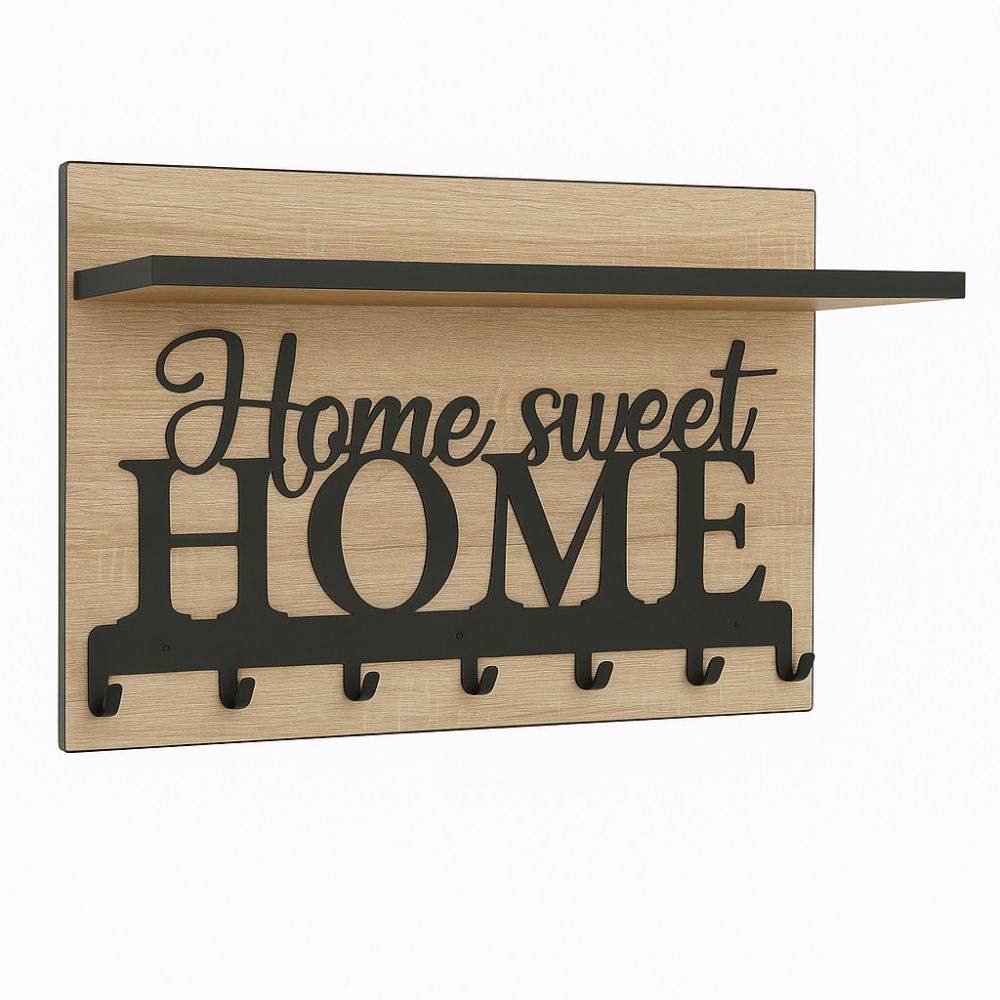 Nowoczesny wieszak, garderoba doskonale nadająca się do przedpokoju. Wykonany jest on z płyty laminowanej o grubości 18mm. Obrzeża oklejane są okleiną PCV w kolorze czarnym. Ozdobny panel w kolorze czarnym posiadający 7 funkcjonalnych haczyków na ubrania.