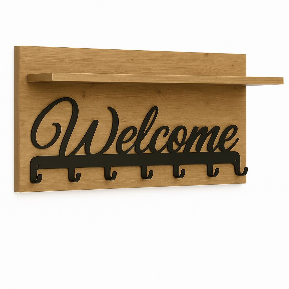 Nowoczesny wieszak, garderoba doskonale nadająca się do przedpokoju. Wykonany jest on z płyty laminowanej o grubości 18mm. Ozdobny panel w kolorze czarnym posiadający 7 funkcjonalnych haczyków na ubrania.