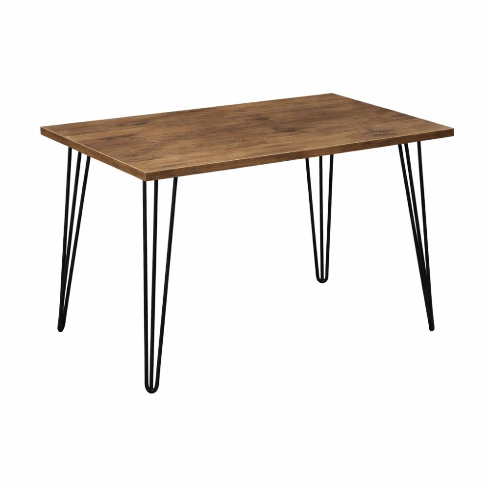 Stylowy stół, który idealnie pasuje do salonu jak i do kuchni. Blat wykonany z płyty laminowanej o grubości 18mm. Nogi Hairpin legs skośne pochylone od pionu ok. 7-8 stopni. Wykonane są ze stalowego pręta malowanego proszkowo, który zapewnia wytrzymałość oraz stabilność stołu. W zestawie komplet gumowych ochraniaczy na metalowe nogi.